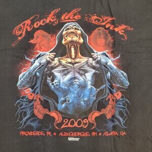 2009 ROCK THE INK SHIRT, TATTOO TOUR DOUBLE SIDED TEE, GILDAN XL DARK ART TOP, GRIM REAPER GRAPHIC SHIRT, VINTAGE GOTHIC FESTIVAL TEE, VINTAGE TSHIRT, ROCK TOUR SHIRT, GOTHIC TEE, DARK ART TOP, CONCERT SHIRT