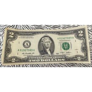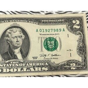 2009 series A 2 dollar bill rare serial number A01927989 A
