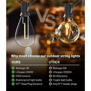 🧿200FT Extra-Long size:Most string lights on the market are only 50-120ft size,For large yards,pool sides,or long fences often require multiple strings to be connected,resulting in tangled wires and potential poor contact.Our 200ft extra-long string light can wrap around an entire tree,cover an entire patio,or even illuminate a medium-sized garden with one string lights,no splicing needed,Installation is time-saving,making the decor looking seamless and attractive.