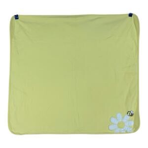 Yellow cotton baby blanket with bee and daisy design from Gymboree. Polka dot backside. Preowned in good condition. Signs of normal wash and wear. No holes or rips. A few spots of light staining. Please see pictures.