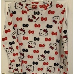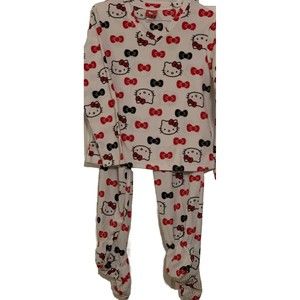 2010 Hello Kitty Sanrio Women's 2 pc Pullover V Neck Footie Pajamas Fleece Women's SZ LARGE- See photos for measurements. Good clean pre-owned condition
