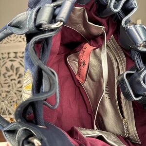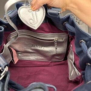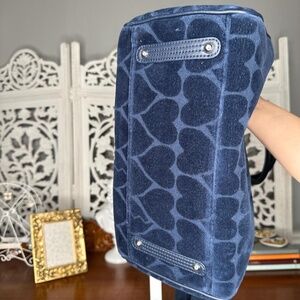 2010 Juicy Couture Daydreamer Bag Navy Blue Velour with Heart Embroidery