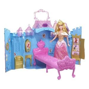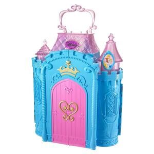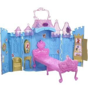 New in box. 2010 Disney Princess Transforming Castle: The Disney Princess Transforming Castle opens up to reveal a bedroom with a fold-out bed, armoire and vanity so girls can play out their favorite princess moments and get ready for the ball! Folds easily and moms love the ready-to-go portability so their little girls can have sparkling adventures anytime! For ages 3 and over.