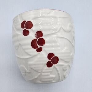 2010 Starbucks Holiday White Holly Red Berries Hand Painted Ceramic Coffee Mug
