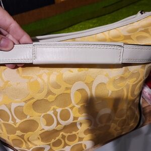 Coach optic yellow 2010 hobo #15667 yellow jacquard signature c print with white leather trim. - authenticated