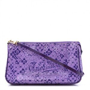 With 'Cosmic Blossom', Takashi Murakami's vision has found a new canvas with a bright, block colour background where Louis Vuitton's iconic Monogram flowers jostle playfully with smiling flower faces, a recurrent theme in Murakami's art, which famously fuses manga graphics with traditional Japanese pictorial motifs.If good things come in small packages, then Louis Vuitton's Vernis Cosmic Blossom Pochette Accessories' size speaks for itself. A classic style from the French house, once you’ve picked up Pochette, you won’t want to put her down. The style has a slim rectangular silhouette, one main compartment with piping and a single leather detachable handle in a glossy violet hue. Released in 2010, in collaboration with Takashi Murakami, the motif plays on the artist's notable illustration style, and features the Louis Vuitton logo. As well as the gold hardware finish, there's a striped purple fabric interior. Fueled with flower power, take this bag as your trusty plus-one to evening events by styling it as a clutch, or travel light during the day with it under your shoulder.