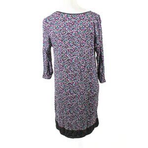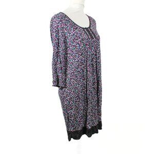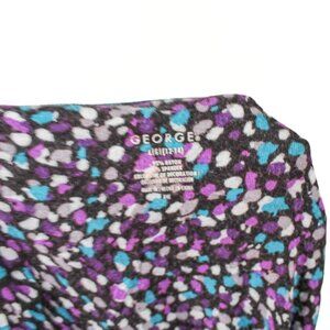 Cozy and colorful, this 2010s George brand nightgown/house dress features a rich winter palette of purple, teal, black, and white with black lace trim. Made from a soft, stretchy 95% rayon / 5% spandex blend. Women’s size Large. Approx. measurements: pit to pit 18–23", length 36.5", sleeve 17". Condition is good/fair with visible pilling and some fading/discoloration from age, wear, and washing. Still super comfy and perfect for relaxing at home in a soft, vintage-inspired style.