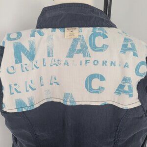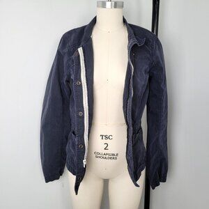 2010s Hollister Soft Faded Navy Utility Jacket Drawstring Waist, Button Front