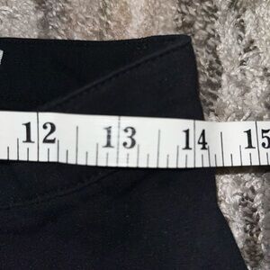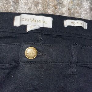 Stylish black pants featuring a gold button. Mid-rise design by Nicki Minaj.
