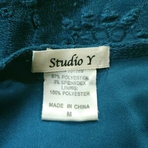 2010s Studio Y Blue Lace Deep V Top Sz M