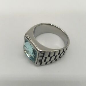 Aqua Cubic Zirconia Handmade Men's Ring Size 11 1/2 NWT
