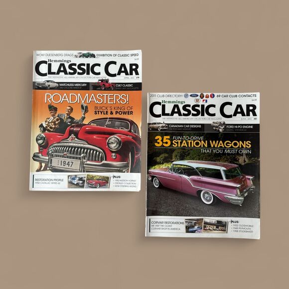 Two collector-favorite issues of Hemmings Classic Car, “The Definitive All-American Collector-Car Magazine.”