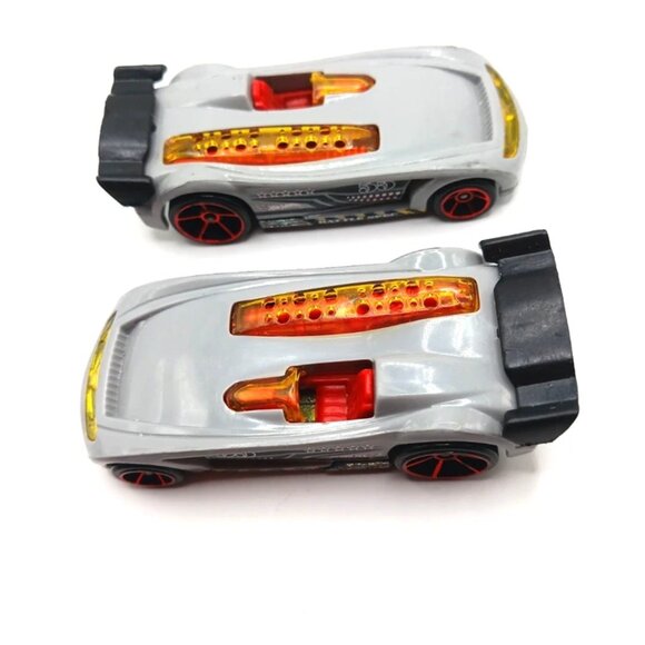 Used in good condition lot of TWO Hot Wheels Battle Spec die cast car . Color is gray + orange