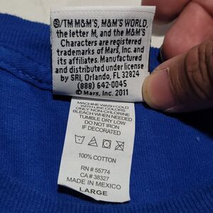 2011 M&M's AUTHENTIC BRANDED BLUE M&M CHOCOLATE CANDY TEE T SHIRT Mens Large EUC