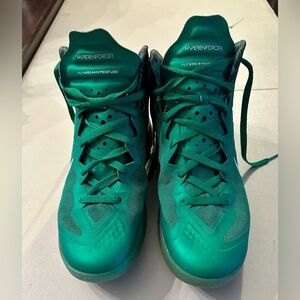 2011 Nike Hyperenforcer Flywire + Hyperfuse green and black Nikes. In very good preowned condition. Does not have the original box.