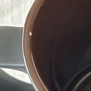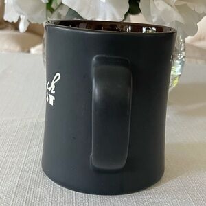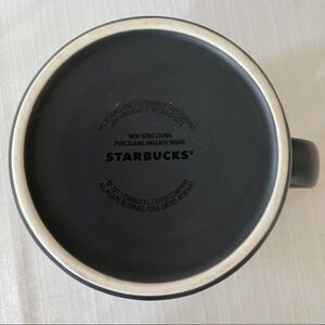 2011 Starbucks 16 oz. French Roast dark blue coffee mug with brown interior. Matte finish almost looks black. New bone china porcelain, microwave and dishwasher safe. Good condition. Minor signs of wear and one tiny chip in the rim at the handle.