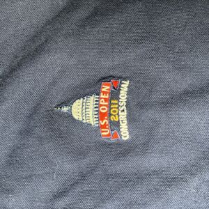 Brand new with tags, this navy blue polo shirt commemorates the 2011 U.S. Open held at Congressional. Part of the official U.S. Open Collection, it features the embroidered Capitol dome and event details on the chest. Made of 100% cotton and crafted in Sri Lanka, this size medium shirt measures approximately 27 in front length and 29 in the back, with a 22 pit-to-pit measurement. Classic fit with a two-button placketperfect for collectors or golf fans.