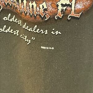 Gently used pre-owned 2012 Harley Davidson Adamer of St. Augustine Motorcycle. Printed on a Harley-Davidson shirt. On the back of the tag is reads VF Imageware, Inc. .Please see photos for details. We do our very best to describe each item but it may be possible that we missed something in the details. Please refer to the pictures as this is the EXACT item that will ship to you.
