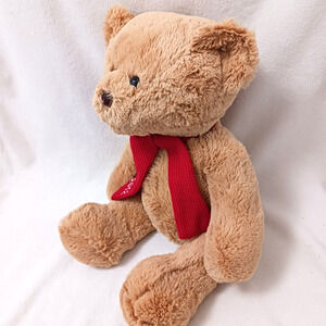 2012 Kohls Plush Bear 13" Sitting Huggable Toy Beige Tan Teddy Bear w Red Scarf
