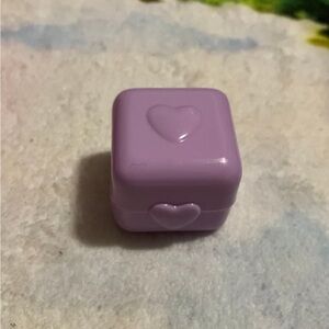 Adding 2 additional cute small plastic containers, since I was going to donate them anyways. The dark purple is shaped like a diamond and the light purple cube with hearts.