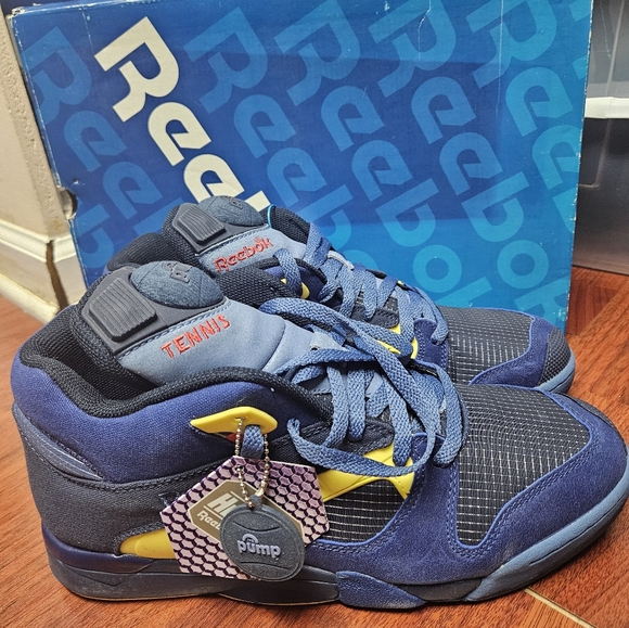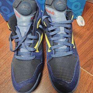 2012 Reebok Court Victory Pump "Nautical Pack " Size 12. Dynamic Reebok sneakers with navy and yellow accents.