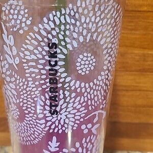 2012 STARBUCKS DANDELION BLOSSOM FLORAL DESIGN 24oz COLD CUP TUMBLER ACRYLIC with straw.