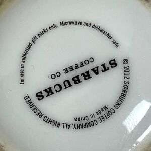 2012 Starbucks Holiday Ornament Logo Coffee Tea Mug Ivory Red Gold