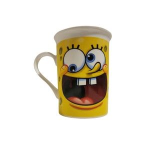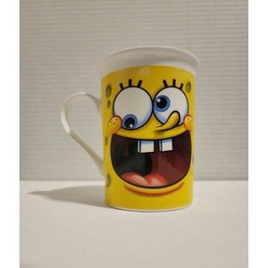 2012 Viacom SpongeBob SquarePants Ceramic Coffee Mug Yellow White (flaws)