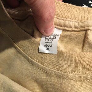 Very old t shirt. It looks like it's solid beige in your eyesight but when you take pictures it's a muted tie dye background