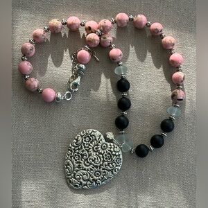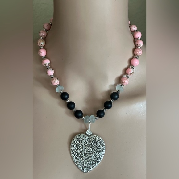 20-1/2 inch Pink Shell Turquoise and Onyx bead Necklace NWOT