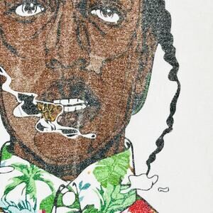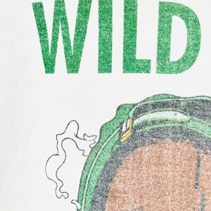 Excellent condition. Graphic print features bold portrait illustration of A$AP Rocky with floral shirt, smoke detailing, and bold “Wild for the Night” text. 100% cotton.