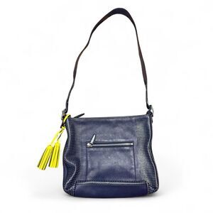 2013 Coach Legacy Navy Blue and Citrine with perforated leather Hobo Tote Bag