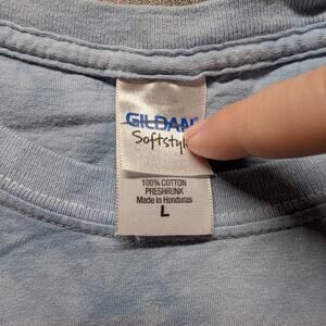Description: 2013 Christmas Kitten T shirt, Front graphic only, blue and red, cute cat design by David Penfound, Perfect for the Holidays, tie dye shirt, big face, animal, kitty, gives The Mountain vibes, Grannycore, cat licking candycane, Santa Hat