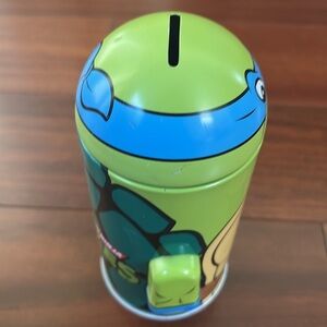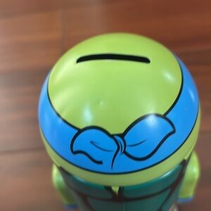 2013 Leonardo Teenage Mutant Ninja Turtles Blue and Green Piggy Bank. Small dents and scratches as pictured.