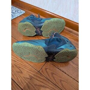 The LeBron 11 'Miami vs Akron' gives the nod to LeBron James' mid-career change that saw him head to the Miami Heat. The shoe's Hyperposite panels are finished in Mineral Teal, with Green Glow on the outsole and Atomic Pink on the inner lining as a nod to the South Florida city. The Brave Blue Hyperfuse base instead gives the nod to Akron's blue-collar reputation. A Lunarlon insole and full-length Zoom Air provide cushioning.