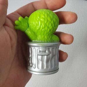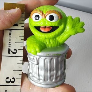 This 2013 Oscar the Grouch figure is a must-have for any Sesame Street fan! Featuring the beloved character in his signature green color, this 2.5" toy is perfect for collectors or children of all ages. Originally manufactured by Hasbro and licensed by Sesame Workshop, this is an original and authentic piece.