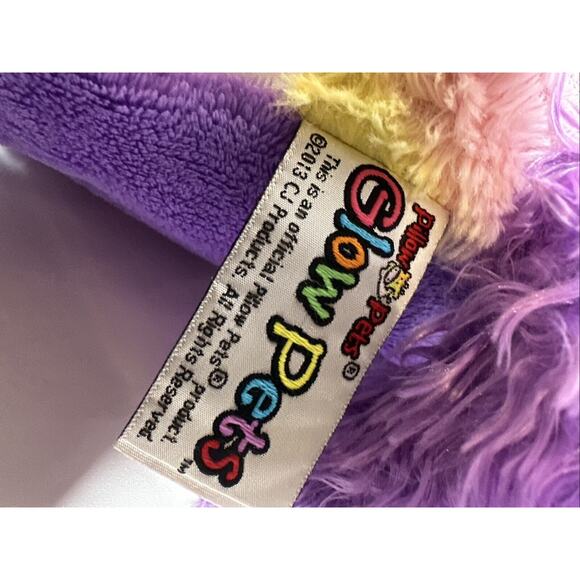 This 2013 Pillow Pets Glow Pets Unicorn is a unique and fun addition to any stuffed animal collection. With its vibrant multicolor design and lights that glow up the unicorn's body, this toy is sure to bring joy to kids and adults alike. Measuring at a medium size of 14-24 inches, it's perfect for cuddling and playtime.
