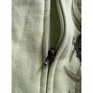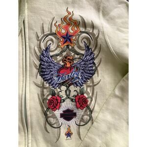 This 2013 Women's Harley Davidson Hoodie in size L is a stylish and comfortable activewear piece perfect for any occasion. The hoodie features a full zip closure, hooded neckline, and convenient pockets for added functionality. Made with a soft fleece fabric and lined with cotton, this hoodie is ideal for all seasons and includes the iconic Harley Davidson logo for a touch of biker-inspired style. The green color adds a pop of personality to the classic design, making it a must-have for any Harley Davidson enthusiast.