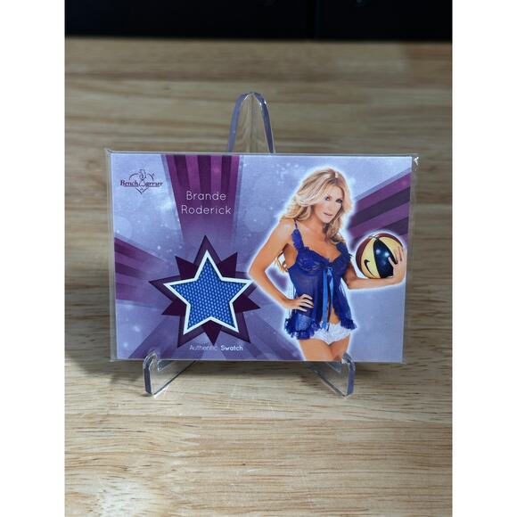 The 2014 Bench Warmer Brande Roderick Patch is a non-sport trading card manufactured by Bench Warmer in 2014. This collectible card features a patch of Brande Roderick, with the card not being autographed. It is a sought-after item for collectors of non-sport trading cards, especially those interested in Bench Warmer products and unique patches.