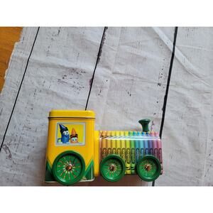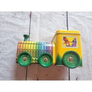 2014 Crayola Tin Train Crayon Storage By Tin Box Company Crayola Experience no Crayola just the tin. Does have a A written on the bottom. And some wear.