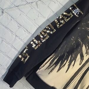 2014 RARE Victoria's Secret PINK Palm Tree Sequin Logo Spellout Hoodie Womens Size XS