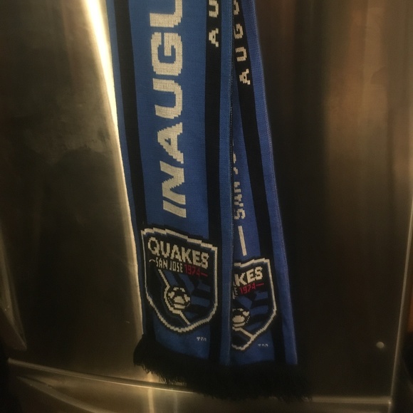 This 2014 San Jose Earthquakes inaugural knit scarf is ideal for the soccer fan who wants to keep warm during these winter days. It celebrates the grand opening of the Levi's stadium (8/2/14). It is in pretty good used condition with a slight bit of a dry stain I have not been able to get out but can hardly notice it.