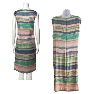 2014 ST. JOHN Watercolor Stripe Silk-Printed Shift Dress w/ Authentication Sticker Size 12