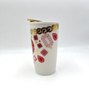 2014 Starbucks Ceramic Red Jewel Gold Lid Chain Tumbler Ruby Gems Coffee Cup
