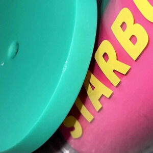 2014 Starbucks Coffee Co. Neon Pink Yellow Lettering Cold Cup Tumbler Venti 24oz