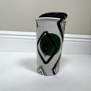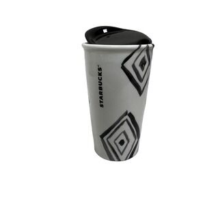2014 Starbucks Travel Mug Ceramic Coffee Black Diamond Dot RARE 10 oz Tumbler