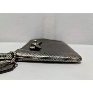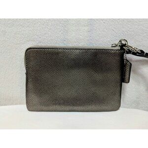 2015 Coach Turn Lock Bow Corner Zip Wristlet Wallet Gunmetal Silver F64648