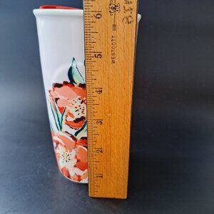 2015 Starbucks Floral Red Flowers Ceramic Travel Cup Tumbler 10oz Dot Collection