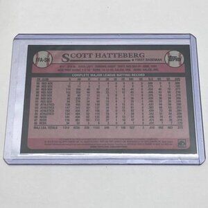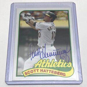 The product is a 2015 Topps Archives Scott Hatterberg Fan Favorites Oakland Athletics autographed trading card. Signed by Scott Hatteberg himself, this hard-signed card is a part of the original 2015 Topps Archives set. Made of card stock and featuring the player's autograph, this sports trading card is a must-have for fans of the Oakland Athletics and baseball collectors alike. The card is a standard size, in English language, and is a special edition Fan Favorites card with the player's signature authenticated by Topps.