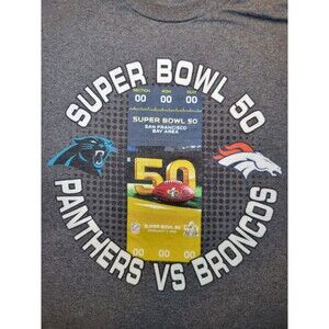 2016 Majestic Super Bowl 50 Carlolina Panthers Denver Broncos Ticket Mens L